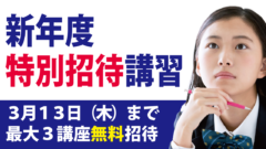 ※東進生、過去の招待講習を2回以上受講した生徒は対象外となります。