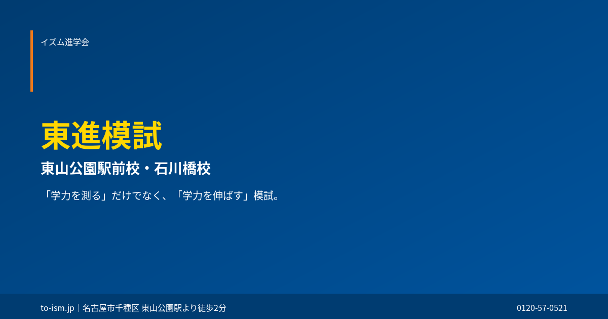 年2回(5月・11月)実施。中学生が全国レベルで自分の学力を測れる機会です。受験料無料で、東進に通っていない方も受験できます。次回:5月31日(日)